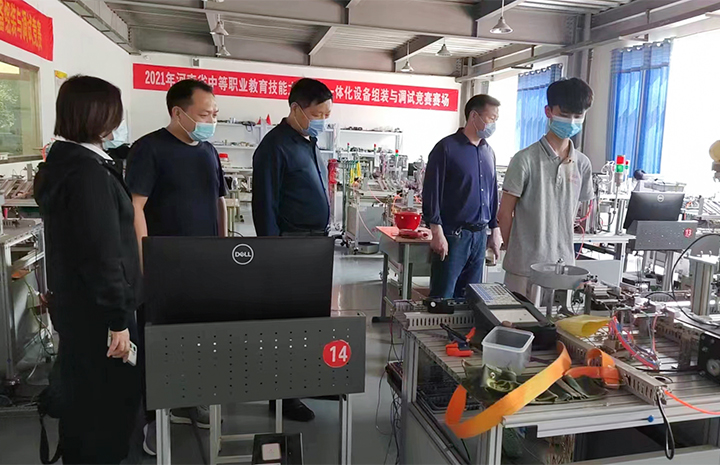 疫情在前,重任在肩。学校领导心系技能大赛训练情况。4月22日上午,芮耀民校长、李家元书记、杨素玲副校长、崔威力主席到西校区慰问检查防疫、国赛训练、网课教学等工作。